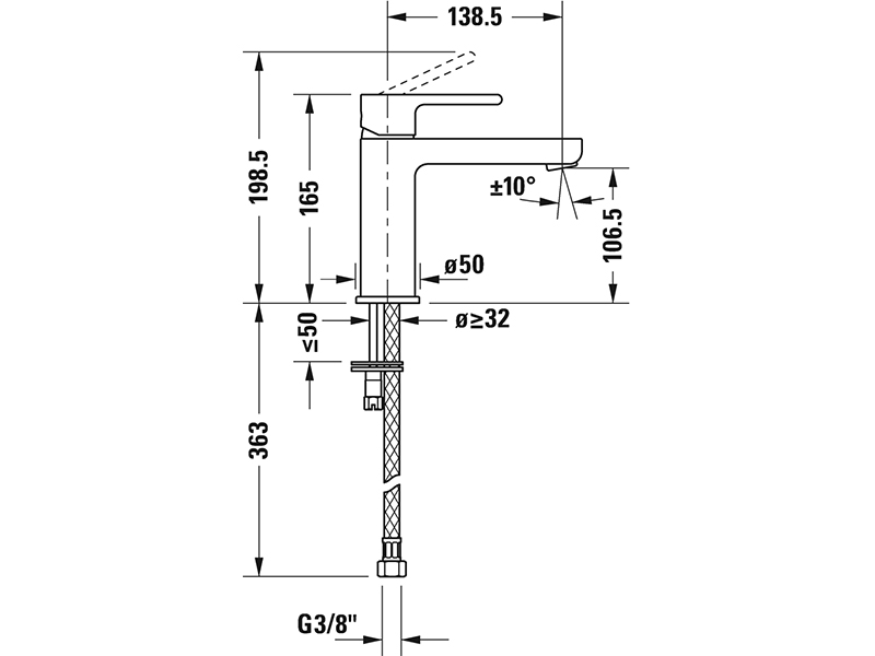 B.2 Смеситель средний для раковины на 1 отв без донного клапана., хром
