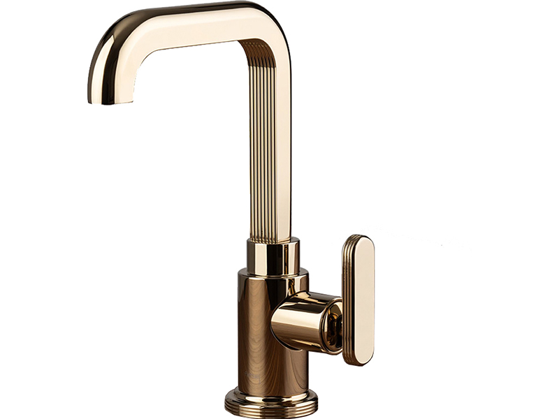 Смеситель для раковины Fima Carlo Frattini PARK LANE F1321OS с вращающимся изливом, с 2 гибкими шлангами 350 мм, c донным клапаном click-clack, цвет золото брашированное.