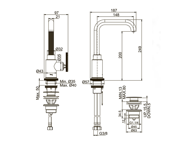 Смеситель для раковины Fima Carlo Frattini PARK LANE F1321SN с вращающимся изливом, с 2 гибкими шлангами 350 мм, c донным клапаном click-clack, цвет никель брашированный.