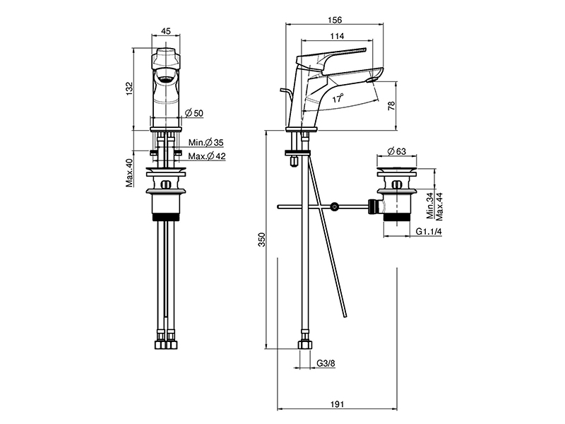 Смеситель для раковины FIMA CARLO FRATTINI SERIE4 F3761CR, на 1 отверстие, с двумя гибкими шлангами 370 мм, с донным клапаном, цвет хром.