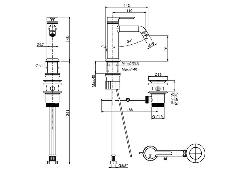 SNAP Смесит.д/рак. с донным клапаном, цвет браш. шампань