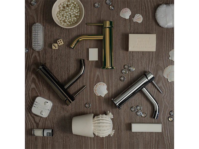Смеситель для раковины FIMA CARLO FRATTINI SPILLO F3031XSHL, с 2 гибкими шлангами длинной 37 см, в комплекте с донным клапаном, цвет шампань.