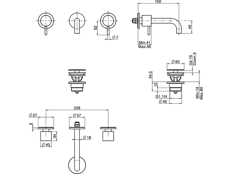 Накидка смесителя для раковины на 3 отверстия Fima Carlo Frattini SPILLO UP F3161/5CR, излив 150 мм, донный клапан, цвет хром. Внутрення часть (арт. F2360) заказывается отдельно.