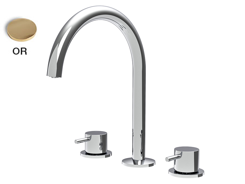 Смеситель для раковины на 3 отверстия Fima Carlo Frattini SPILLO UP F3161OR, с вращающимся изливом, c донным клапаном click-clack 1``1/4, цвет золото.