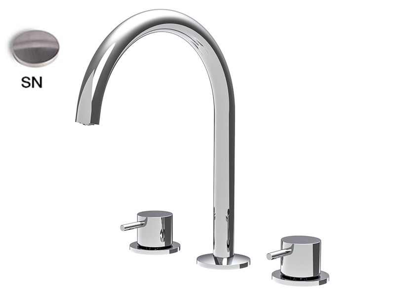 Смеситель для раковины на 3 отверстия Fima Carlo Frattini SPILLO UP F3161SN, с вращающимся изливом, c донным клапаном click-clack 1``1/4, цвет никель брашированный.