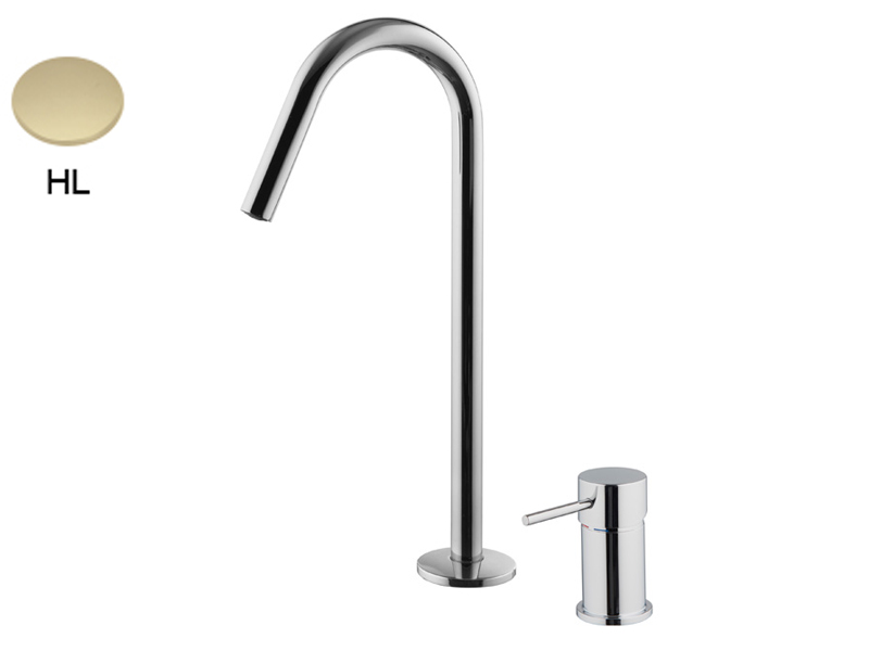Смеситель на раковину на 2 отверстия с вращающимся изливом Fima Carlo Frattini SPILLO UP F3271NCHL, с двумя гибкими шлангами, цвет шампань.