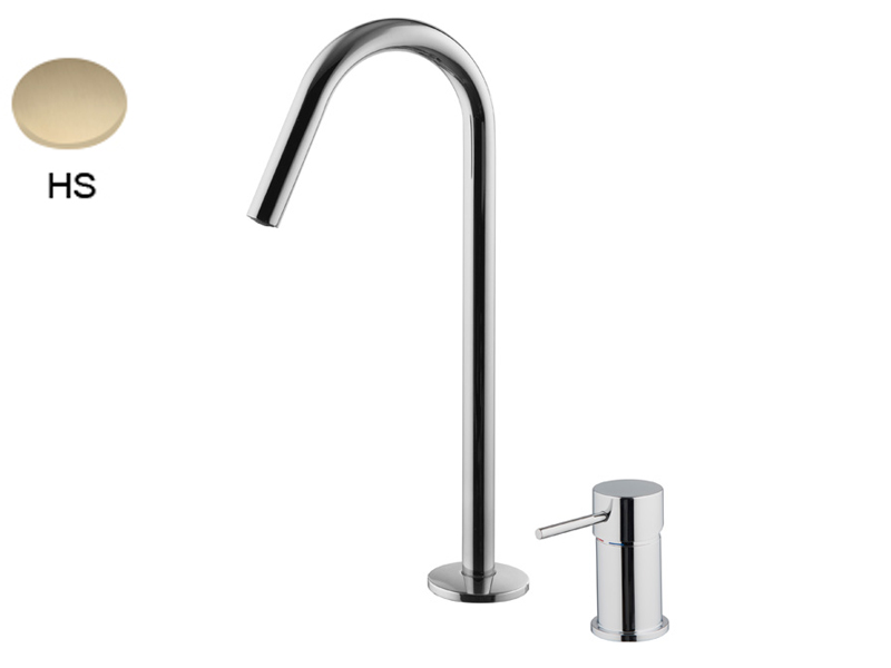 Смеситель на раковину на 2 отверстия с вращающимся изливом Fima Carlo Frattini SPILLO UP F3271NCHS, с двумя гибкими шлангами, цвет шампань брашированный.