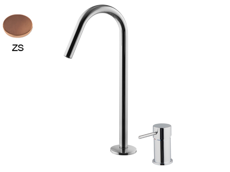Смеситель на раковину на 2 отверстия с вращающимся изливом Fima Carlo Frattini SPILLO UP F3271NCZS, с двумя гибкими шлангами, цвет янтарная бронза брашированная.