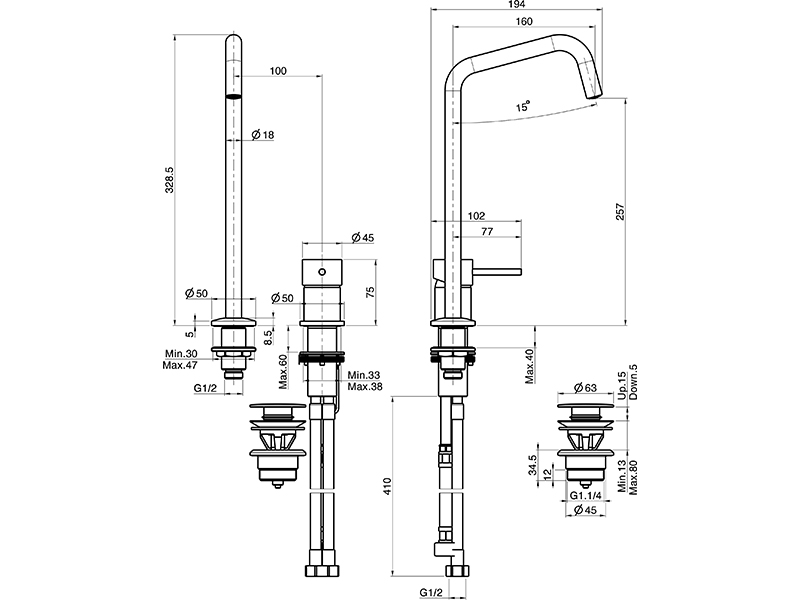 | Высота излива, см | 25 |
