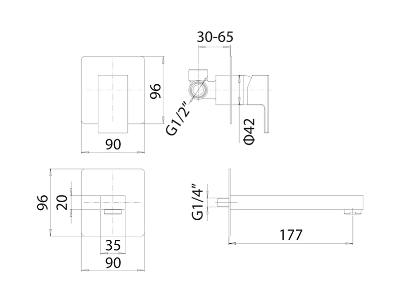 MAMOLI FEEL 48470000D12K Встраиваемый смеситель для раковины настенный на 2 отверстия в комплекте с внутренней частью, излив 177 мм. Цвет Matt Black.