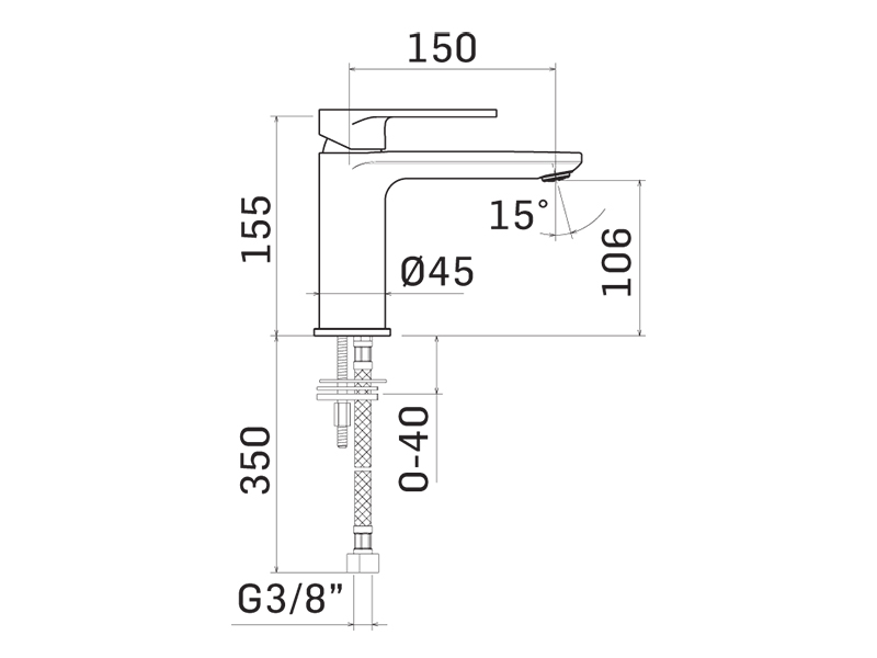 SADLER Смеситель для раковины на 1отв без дон.клапана,Matt black