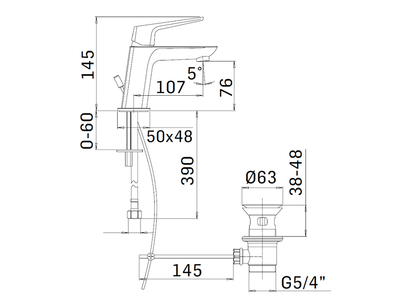 SPARTACO Смеситель для раковины с дон.клапаном,Chrome