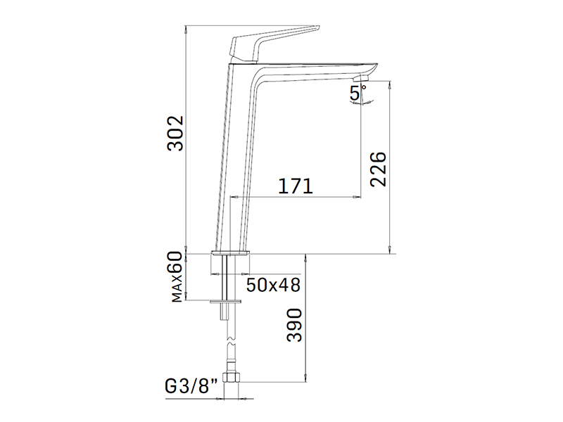 SPARTACO Смеситель для раковины высокий без дон.клапана,brushed inox
