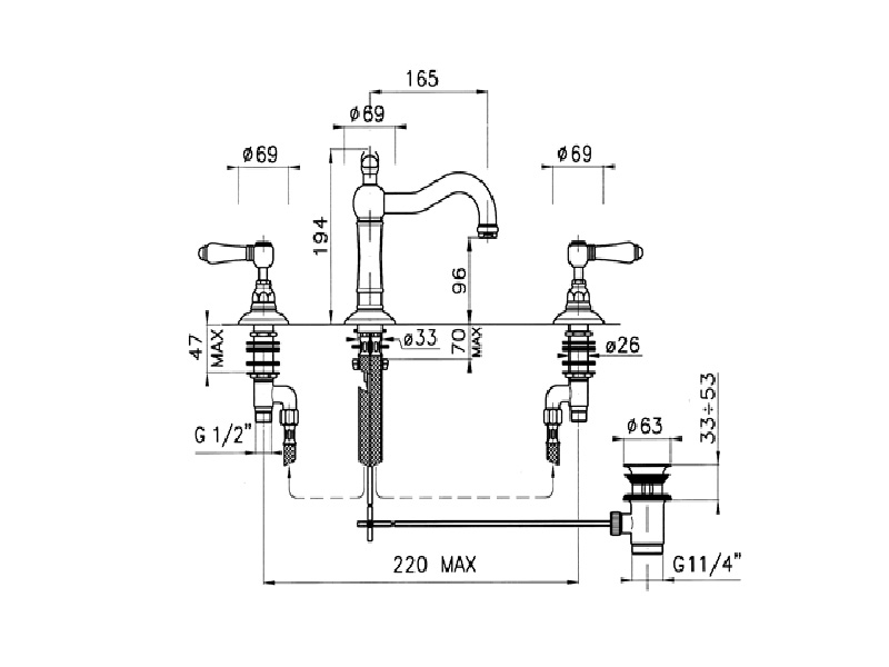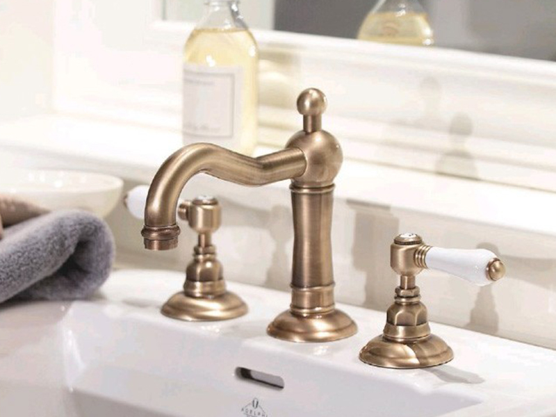 Смеситель для раковины NICOLAZZI P.M.BLANC 1409BZ78 двухвентильный, с донным клапаном, на 3 отверстия, цвет бронза, декор Petit Mont Blanc