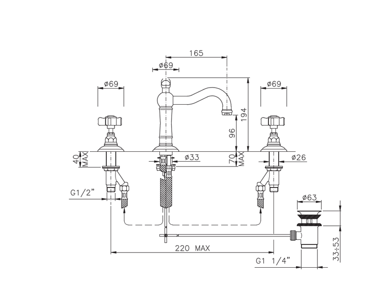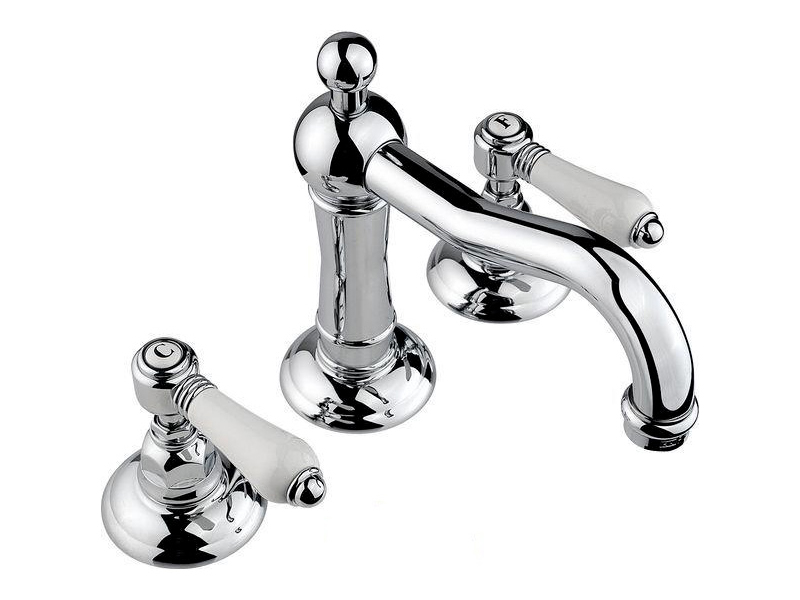 Смеситель для раковины NICOLAZZI P.M.BLANC 1409CR78 двухвентильный, с автоматическим сливом, на 3 отверстия, ручки керамические, с донным клапаном, цвет хром.