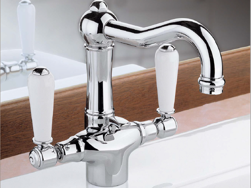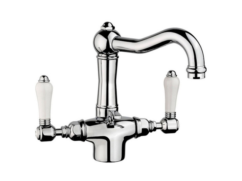 Смеситель для раковины NICOLAZZI P.M.BLANC 1432CR78 двухвентильный, на одно отверстие, с поворотным изливом, с донным клапаном, с керамическими ручками, цвет хром.