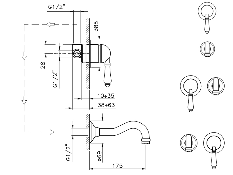 P.M.Blanc Смеситель для раковины настенный на 2отв., цвет cromo