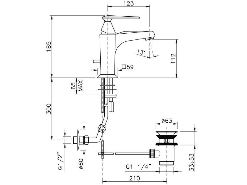 Смеситель для раковины NICOLAZZI VINCENT 3002CR35 однорычажный, с автоматическим сливом, цвет хром.