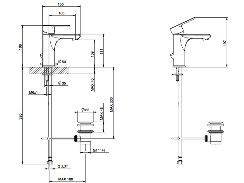 Смеситель для раковины Tiemme Ten TN08 с управляемым донным клапаном, средний, цвет хром.
