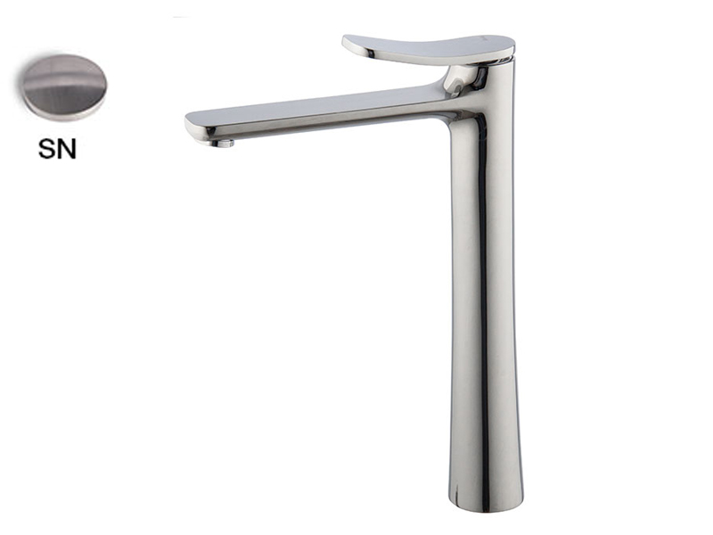Смеситель на раковину высокий FIMA CARLO FRATTINI FLO F3801/HSN, с 2 гибкими шлангами 370 мм, с донным клапаном click-clack 1``1/4 с переливом, цвет никель брашированный.