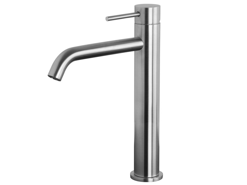 Смеситель на раковину высокий Fima Carlo Frattini SPILLO STEEL F3071LINOX, излив 166 мм, с 2 гибкими шлангами 370 мм в комплекте с донным клапаном, цвет нержавеющая сталь.