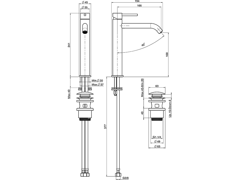 | Высота излива, см | 16 |