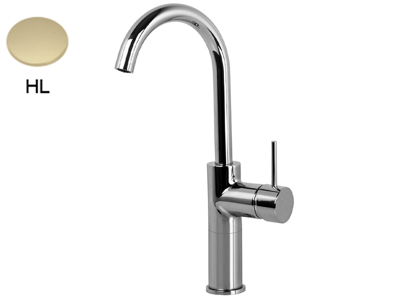 Смеситель на раковину высокий FIMA CARLO FRATTINI SPILLO UP F3041/HHL c вращающимся изливом, цвет шампань. С двумя гибкими шлангами, донным клапаном click-clack.