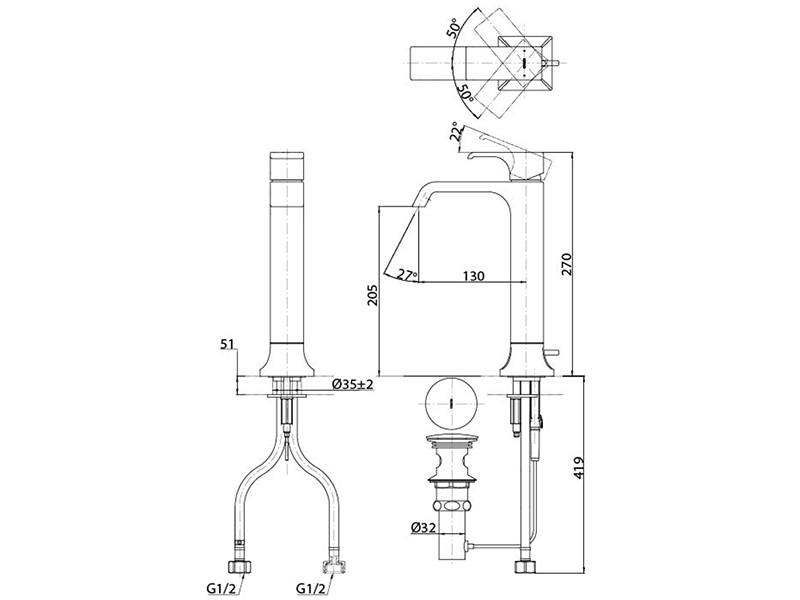 TOTO GC Смеситель для раковины высокий со сливным клапаном, цвет хром. Модельный ряд GB19. Технологии: COMFORT GLIDE, водосбережение.