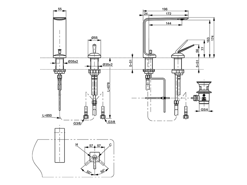 TOTO ZL Смеситель для раковины со сливным клапаном, цвет хром. Размеры:5,5x19,6x17,4см. Модельный ряд GB17.Технологии: