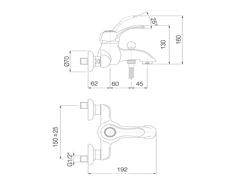 Смеситель для ванны FIMA CARLO FRATTINI LAMP F3304/1CR внешнего монтажа без душевого комплекта, автоматический переключатель, 2 подвода воды 1/2 с эксцентриком, цвет хром.