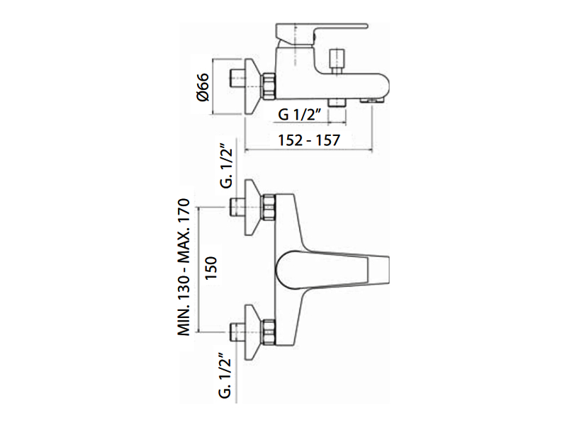 LOGOS Смеситель для ванны настенный с душ.гарнитуром на 2отв.,Chrome