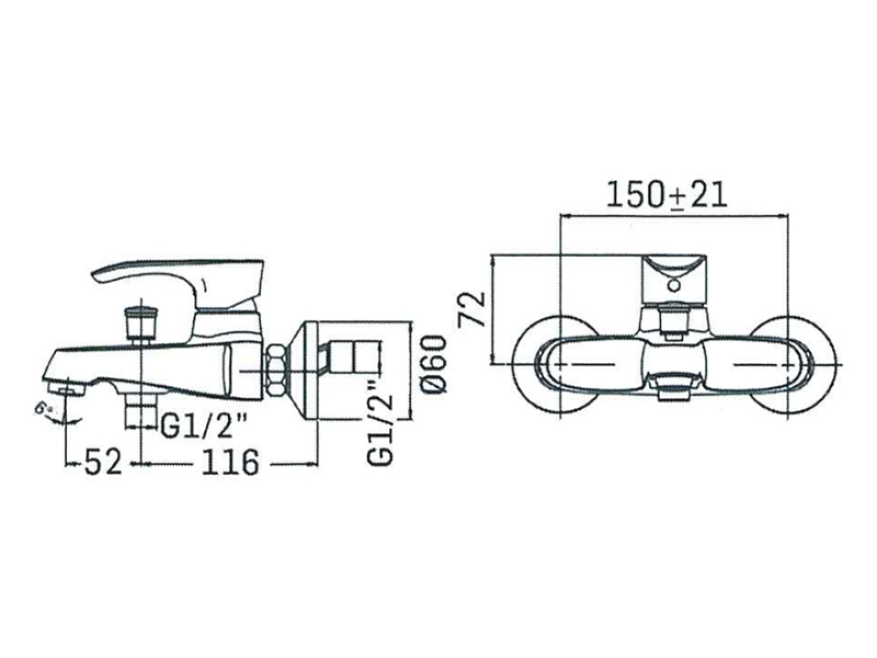 SMILE Смеситель для ванной настенный на 2отв.без душевого комплекта, Chrome