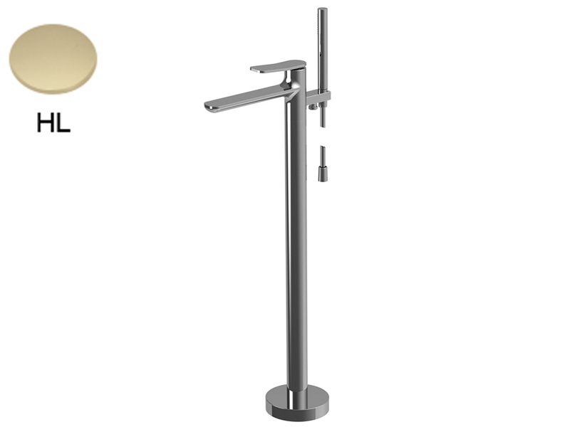 Смеситель для ванны напольный Fima Cralo Frattini FLO F3804/6NHL, цвет шампань. Высота от пола до аэратора 783мм, ручной душ с защитой от извести анти-кальк, гибкий шланг хромалюкс 1500 мм, внутренняя часть (арт. F3020) заказывается отдельно