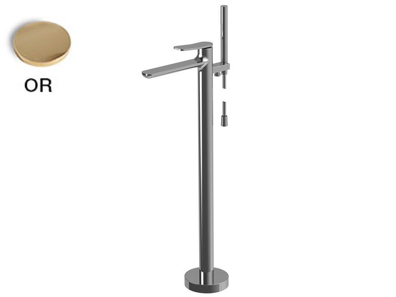 Смеситель для ванны напольный Fima Cralo Frattini FLO F3804/6NOR, цвет золото. Высота от пола до аэратора 783мм, ручной душ с защитой от извести анти-кальк, гибкий шланг хромалюкс 1500 мм, внутренняя часть (арт. F3020) заказывается отдельно