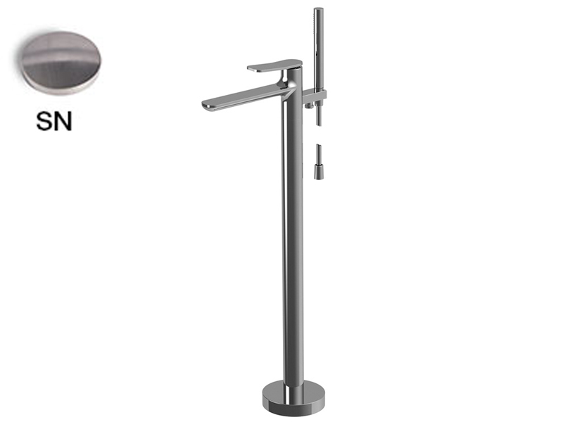 Смеситель для ванны напольный Fima Cralo Frattini FLO F3804/6NSN, цвет никель брашированный. Высота от пола до аэратора 783мм, ручной душ с защитой от извести анти-кальк, гибкий шланг хромалюкс 1500 мм, внутренняя часть (арт. F3020) заказывается отдельно