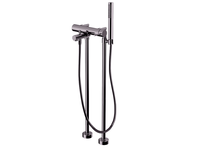 SPILLO UP Смеситель для ванны напольный в комплекте с душевым гарнитуром F3034/4SN (внешняя часть), цвет брашированный никель. Комплект труб для монтажа M 1/2”, переключатель, ручной душ с защитой от извести анти-кальк, гибкий шланг хромалюкс 1500 мм, внутренняя часть заказывается отдельно (арт. F2302).