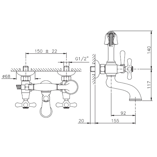 NUOVA BRENTA Смеситель для ванны настенный на 2отв. с ручным душем, цвет bronzato