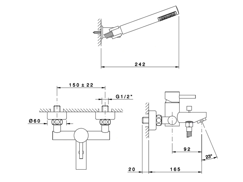 OLIMPUS Смеситель для ванны настенный с душ.гарнитуром, цвет cromo