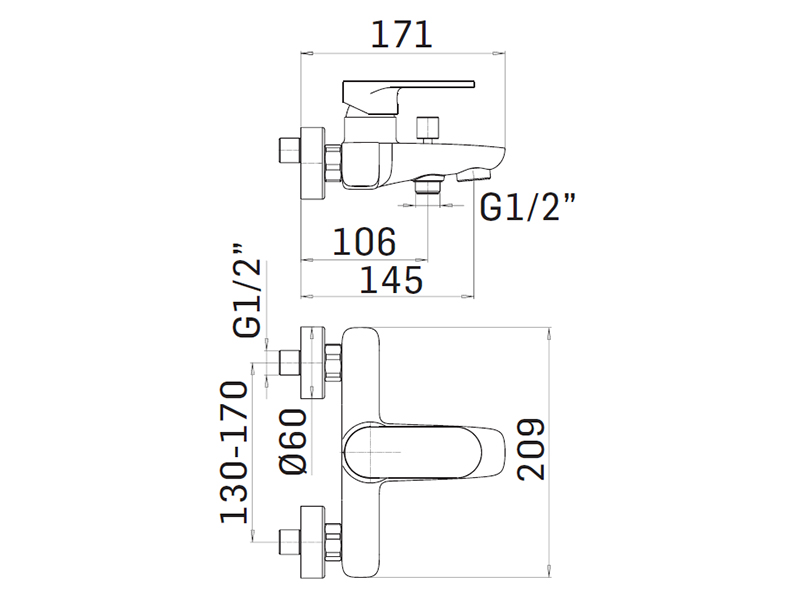 Смеситель для ванны Mamoli SADLER 1602PG116021 настенный, с душевым гарнитуром, цвет хром.