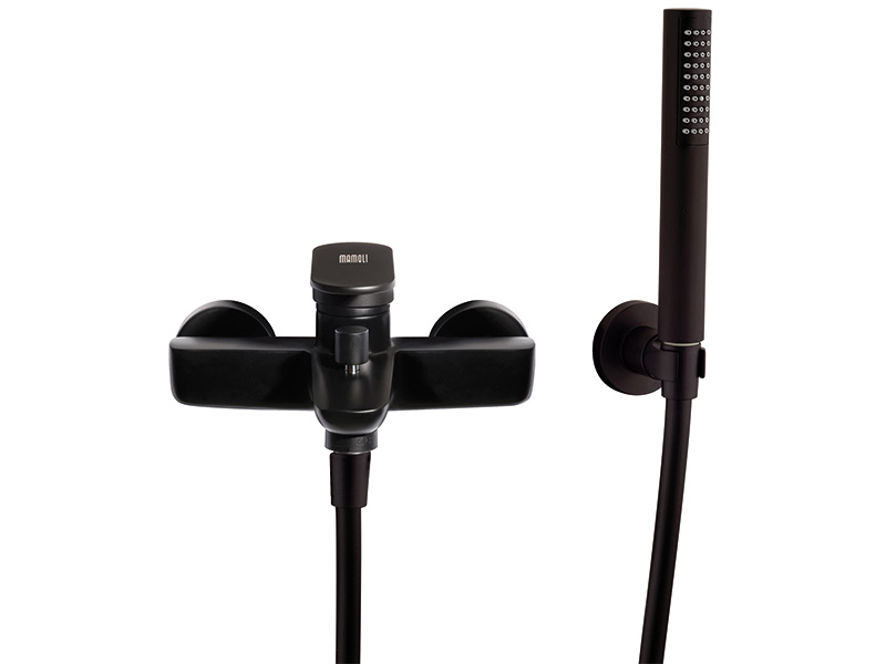 Смеситель для ванны Mamoli SADLER 1602PG29602K настенный, с душеввым гарнитуром, цвет черный матовый.
