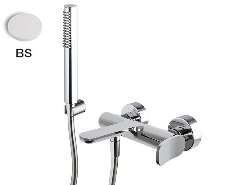 Смеситель для ванны FIMA CARLO FRATTINI FLO F3804BS внешнего монтажа с душевым комплектом, автоматический переключатель, хромированный гибкий шланг 150 см, ручной душ с защитой от извести анти-кальк, настенный держатель, 2 подвода воды 1/2 с эксцентриком, цвет белый матовый.