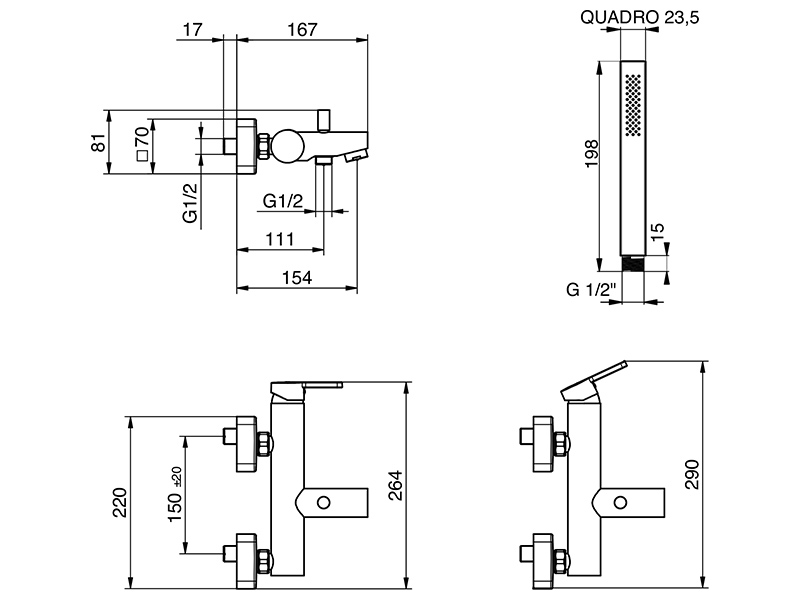 Смеситель для ванны Tiemme SKY Q10 Q13 с лейкой, держателем и шлангом, хром