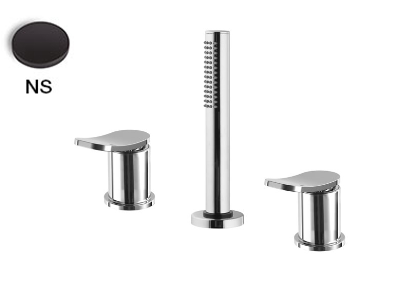 Смеситель к борту ванны Fima Carlo Frattini FLO' F3814/1NNS на 3 отверстия, цвет черный матовый. Дввухрычажный смеситель, держатель для душа, гибкая подводка нейлоновая 1500 мм, ручной душ с защитой от извести анти-кальк.