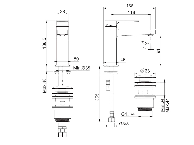 Смеситель на раковину FIMA CARLO FRATTINI NEXT Fima F3941NCR, с 2 гибкими шлангами длинной 35 см, с донным клапаном click-clack для раковин с переливом, слив 1"1/4, цвет хром.