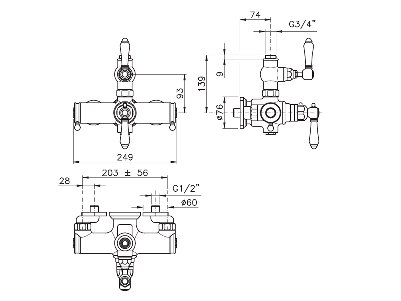 PETIT MONT BLANC Смеситель термостатический настенный, цвет bronzato