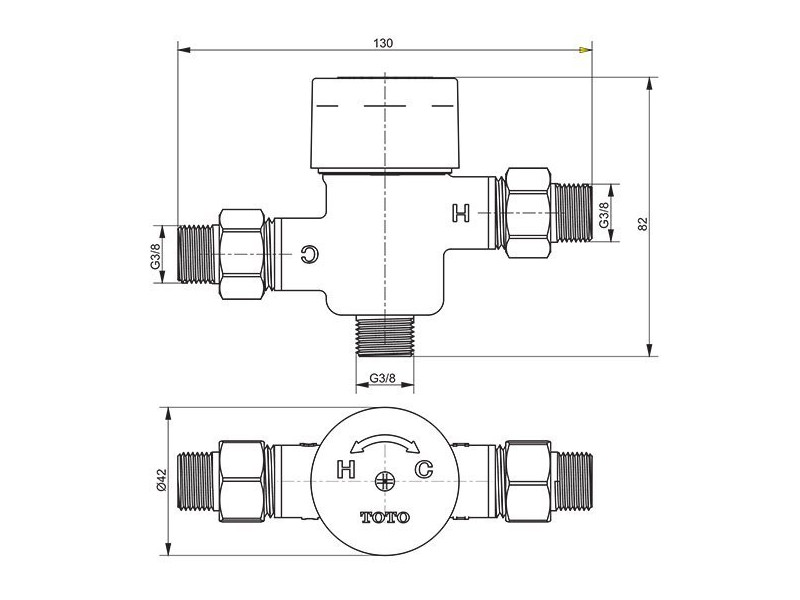 Смеситель темостатический TOTO PUBLIC DLE424SMAE, встроенная часть для смесителя DLE124DHE4, для подключения горячей и холодной воды к смесителю, материал латунь.