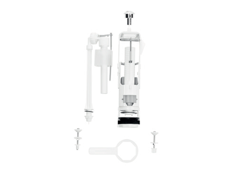 Смывной механизм HATRIA Y0JW01 универсальный, двойной смыв, нижний подвод воды, кнопка хром.