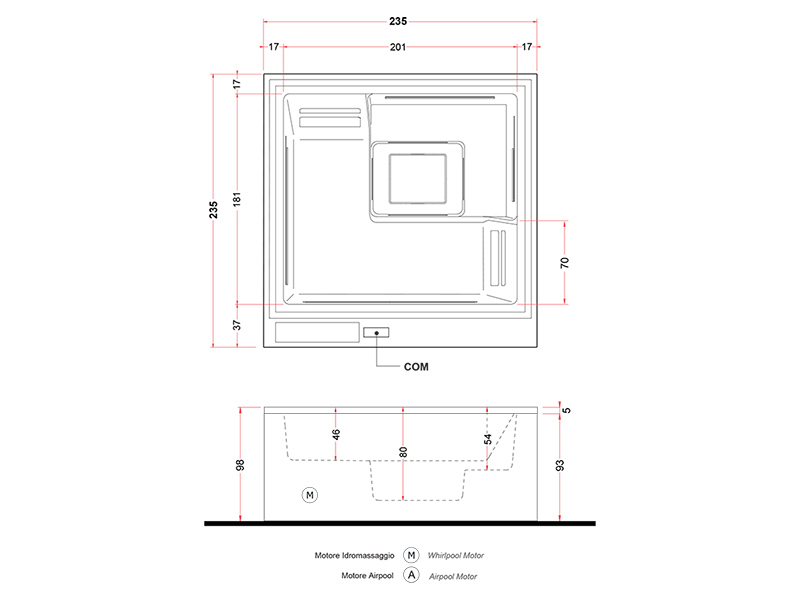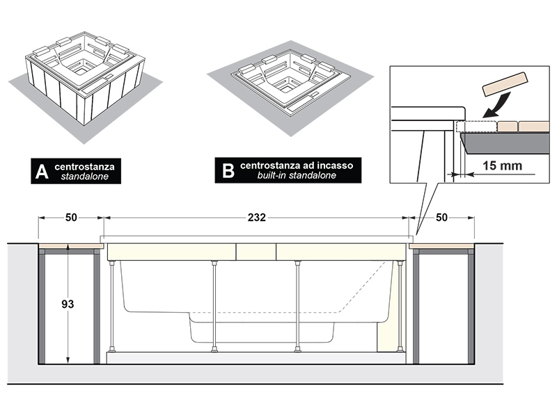 Спа бассейн Treesse PHANTOM встраиваемый, размер 235x235x98 см. На 5-6 человек.