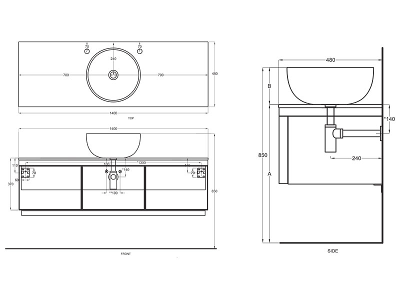 CIELO MUPI140 MULTIPLO Столешница керамическая на структуру или тумбу для ракивны, цвет Talco. Обязательное сочетание с тумбой MUMBG140NM, MUMBG140CM, MUMBG140NM. MUMBG140CM или структурой MUST140.
