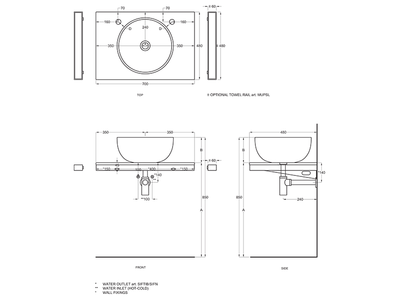 CIELO MUPI70 MULTIPLO Столешница керамическая на структуру или тумбу для ракивны, цвет Anemone. Обязательное сочетание с тумбой MUMBG70NM, MUMBG70CM, MUMBG70NM. MUMBG70CM или структурой MUST70.